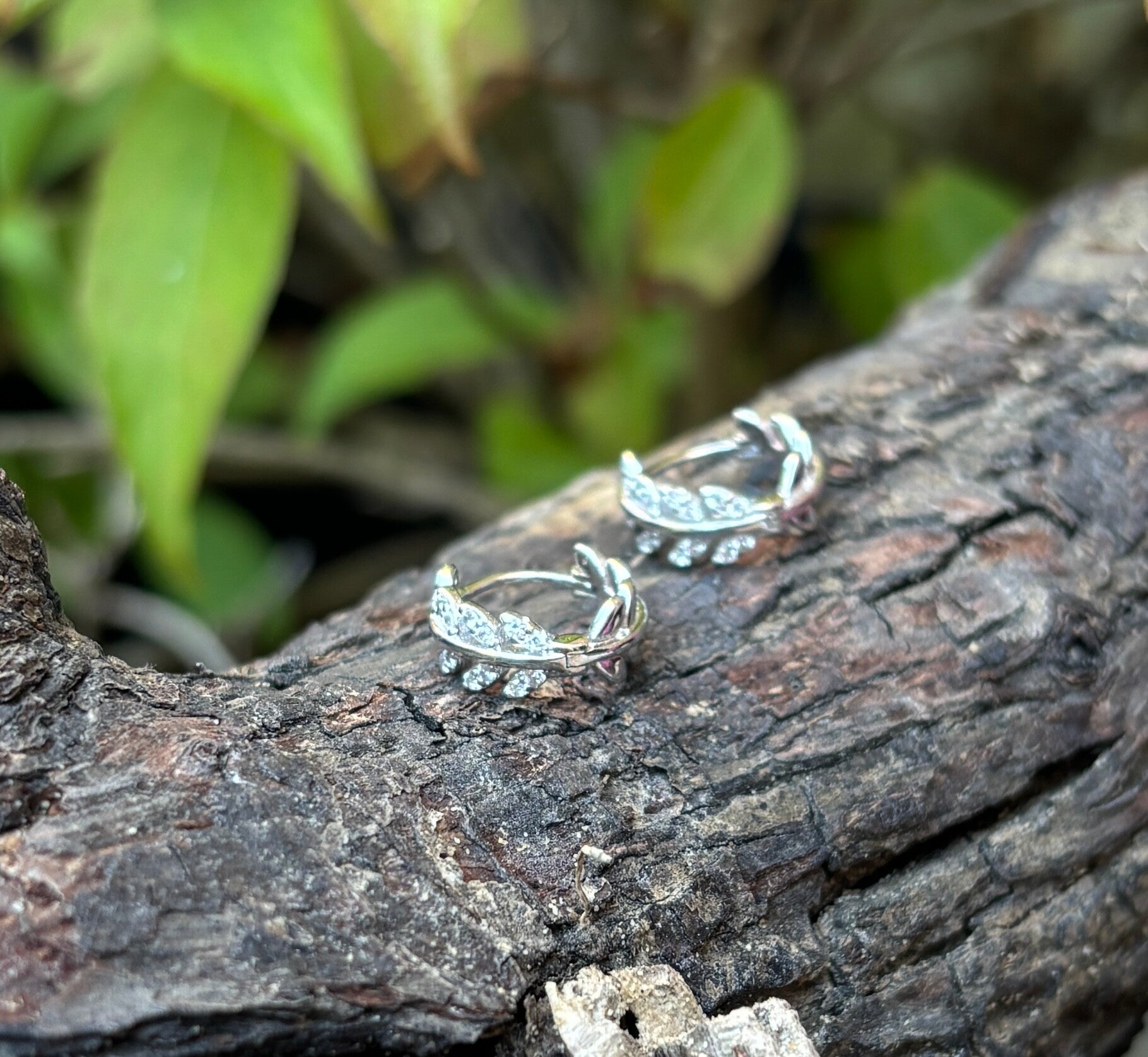925 Sterling Silver Cubic Zirconia Leaf Huggie Earrings