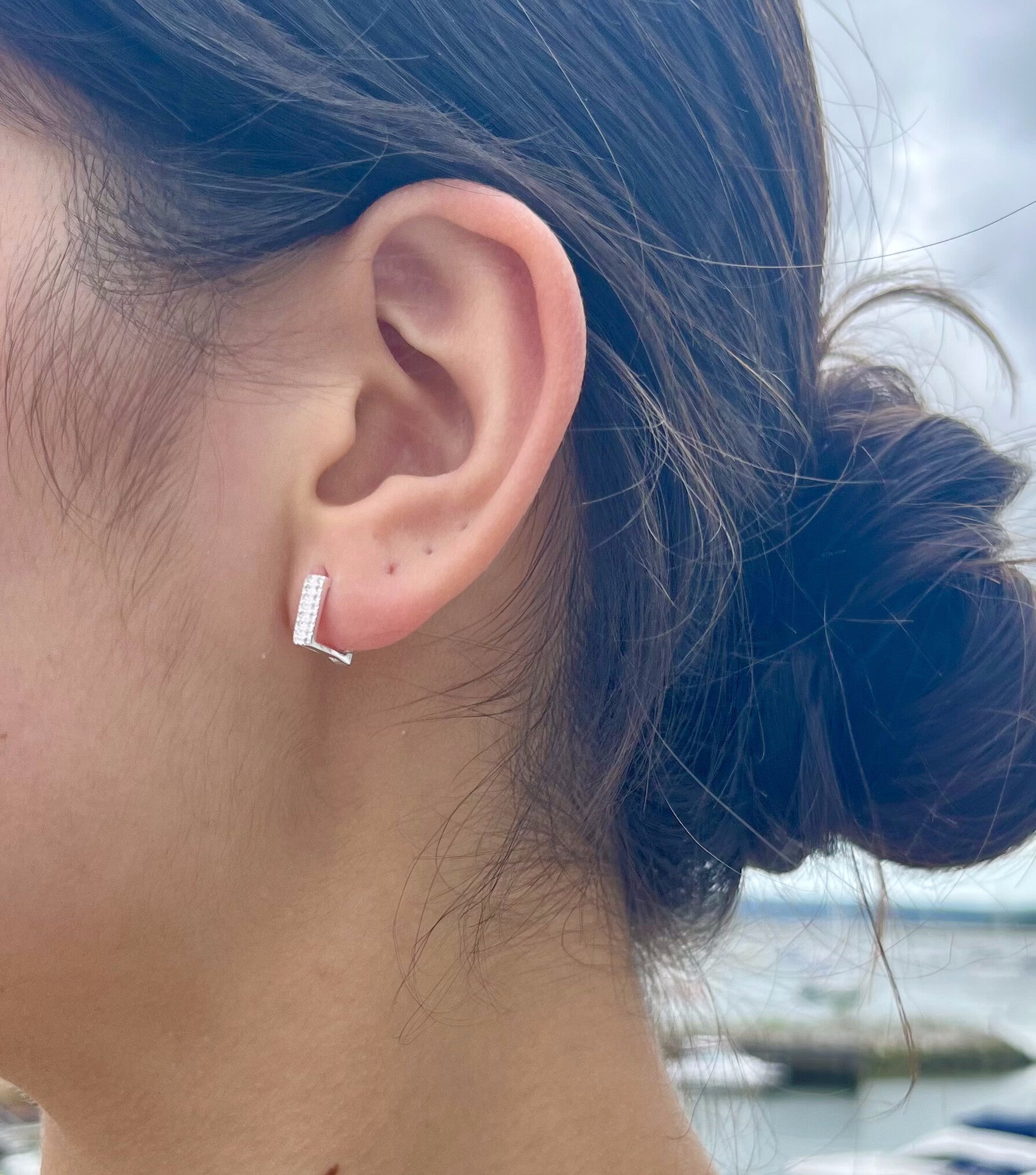 925 Sterling Silver Cubic Zirconia Square Huggie Earrings