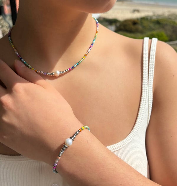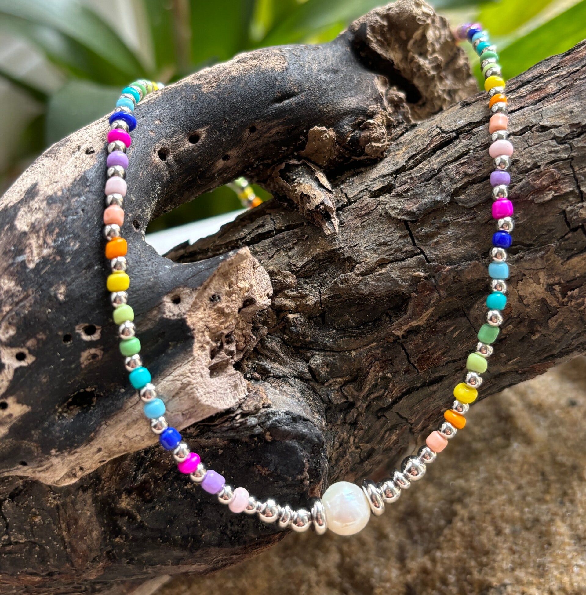 Silver Plated Fresh Water Pearl Miyuki Rainbow Necklace