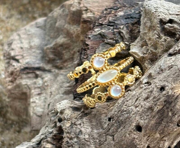 - 18ct Gold Plated- Base Metal: Stainless Steel- Tarnish Free & Waterproof- Gemstone: Cats Eye- Dimension: Adjustable- Weight: 2.8g