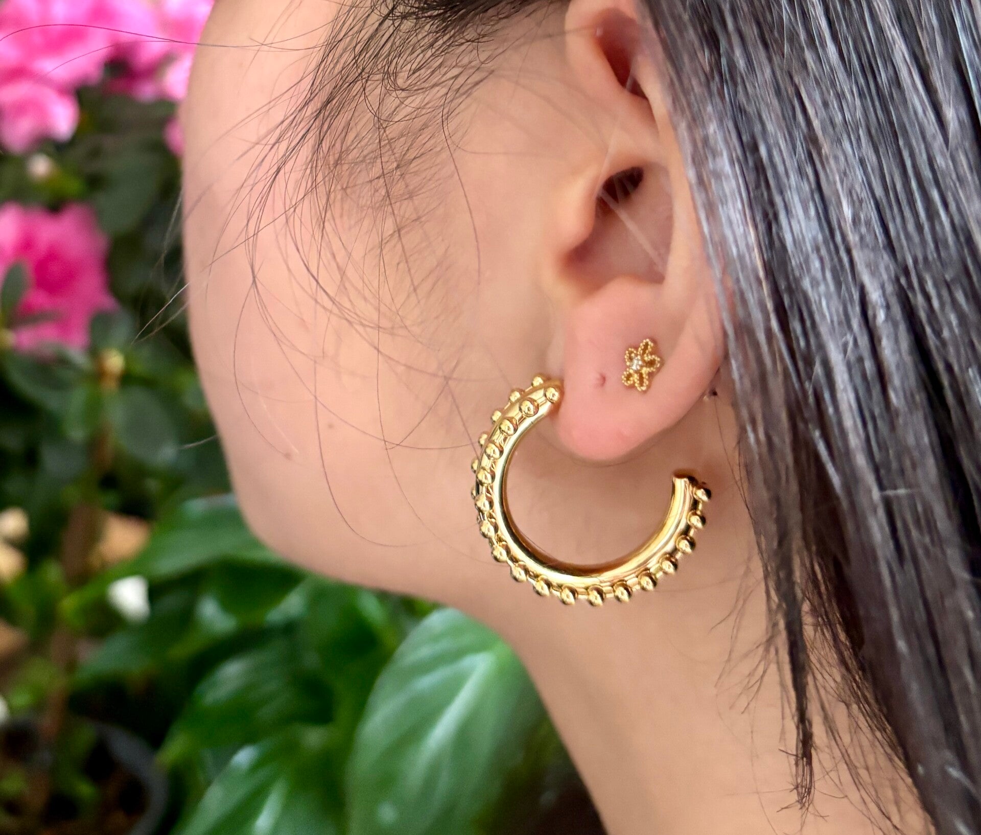 - 18ct Gold Plated- Stainless Steel- Tarnish Free & Waterproof- Dimension: 2.7cm x 2.7cm- Weight: 13.5g