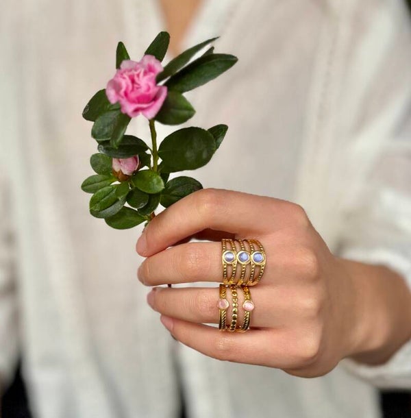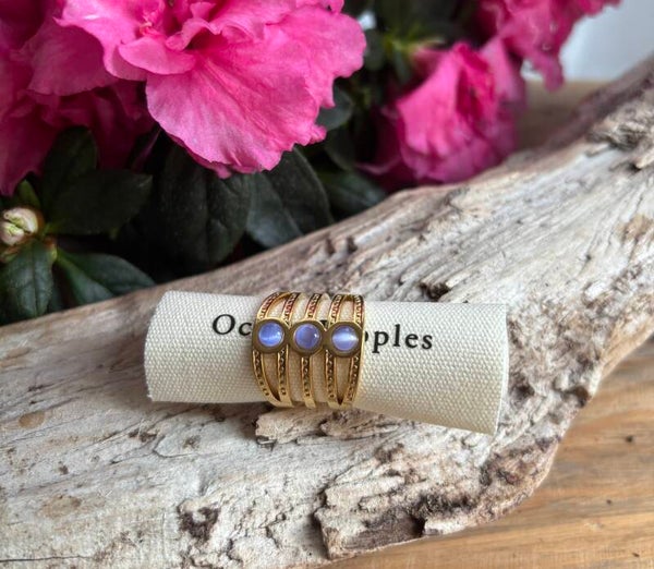 - 18ct Gold Plated- Base Metal: Stainless Steel- Tarnish Free & Waterproof- Gemstone: Purple Glass- Dimension: Adjustable- Weight: 5g