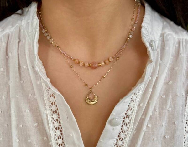 - 18ct Gold Plated- Base Metal: Stainless Steel- Tarnish Free and Waterproof- Gemstone: Sunstone- Dimension: 39cm + 5cm- Weight: 8.9g