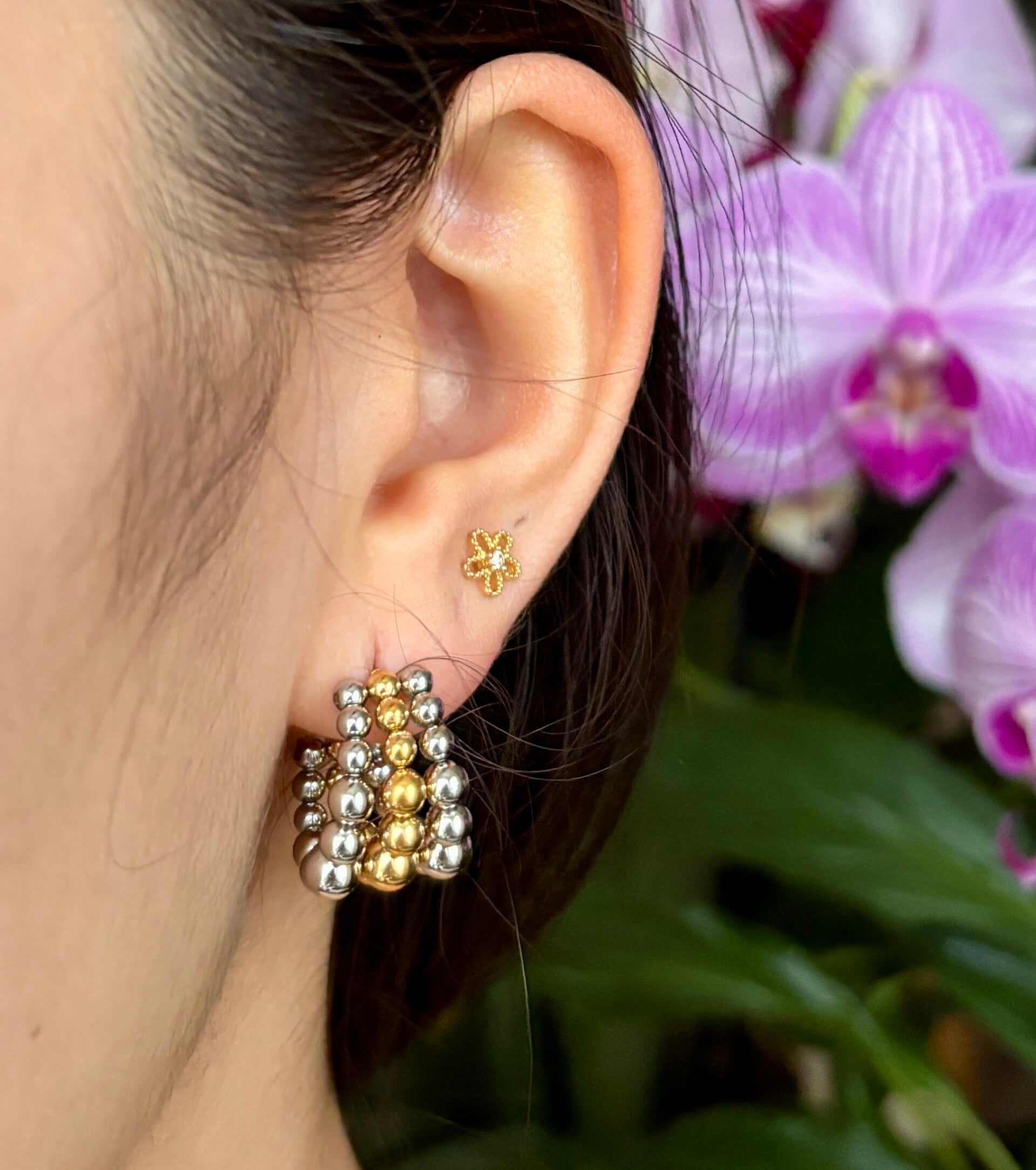 - 18ct Gold Plated- Stainless Steel- Tarnish Free & Waterproof- Dimension: 1.90cm x 1.49cm- Weight: 11.8g