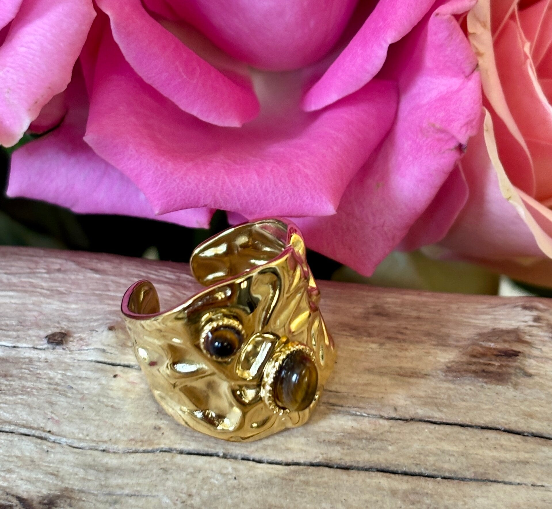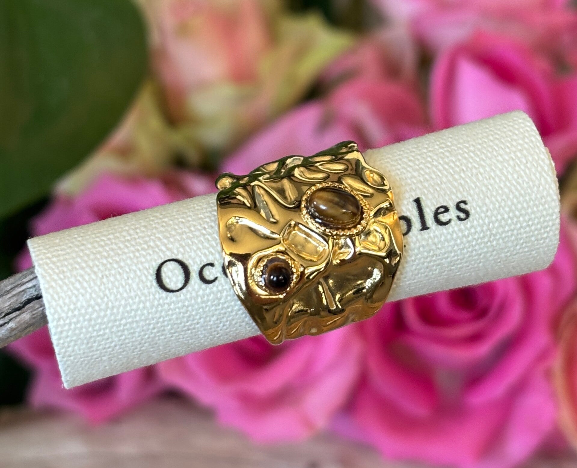 - 18ct Gold Plated- Base Metal: Stainless Steel- Tarnish Free & Waterproof- Gemstone: Tiger's Eye- Dimension: Adjustable- Weight: 7.7g