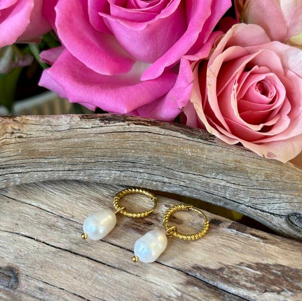 - 18ct Gold Plated- Stainless Steel- Tarnish Free & Waterproof- Gemstone: Fresh Water Pearl- Dimension: 2.8cm x 1.2cm- Weight: 2.8g