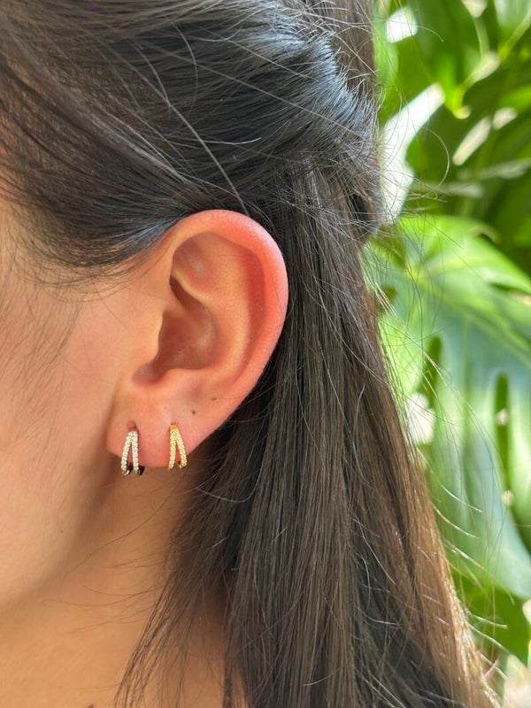 925 Sterling Silver Cubic Zirconia Double Hoop Earrings
